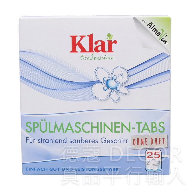 使用方法:請依您家中洗碗機的清洗方式,加入洗碗機清潔錠進行清潔程序,如有難去除的頑垢,如茶垢與咖啡垢,可增加用量,或配合Klar的「去水垢鹽」加強清洗。