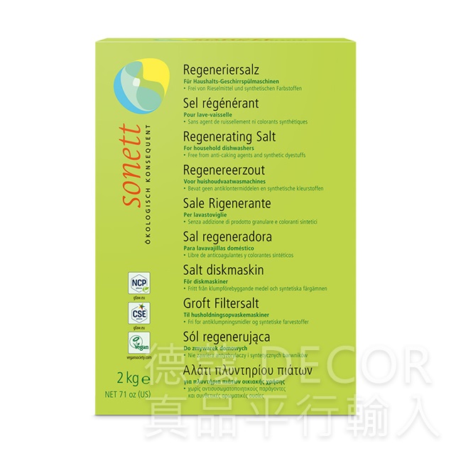 Sonett去水垢軟化鹽 (洗碗機專用)能你更滿意碗盤洗滌後的結果,用量節省,不再擔心碗盤清潔劑的殘留,省水照顧環境。