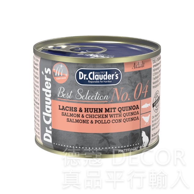 Dr. Clauder’s No.5 雞肉+鮪魚+菠菜罐,雙重肉肉鮮味,超對貓咪的胃。 還加了菠菜,補營養、顧健康,幫助腸胃更順暢。 無穀、無添加,挑嘴主子也能吃得安心開心,吃完還會舔碗唷!