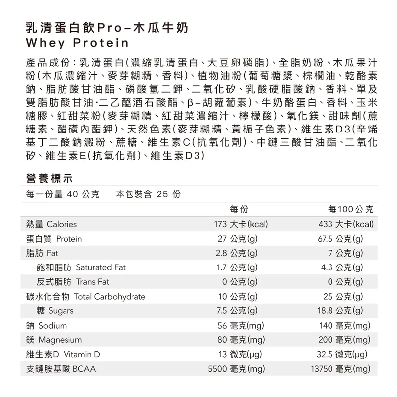 多效乳清蛋白飲 PRO 1KG 大包裝| 木瓜牛奶