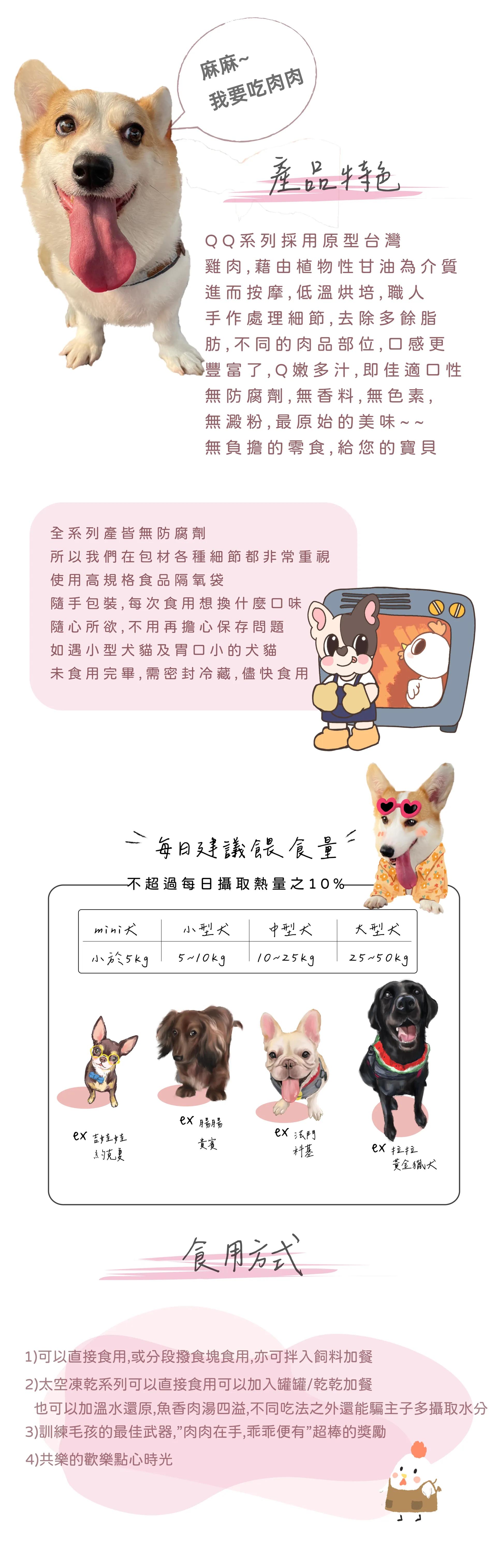 ■ 100%純天然台灣雞肉:無防腐劑添加,給您的毛孩安心的零食選擇。
