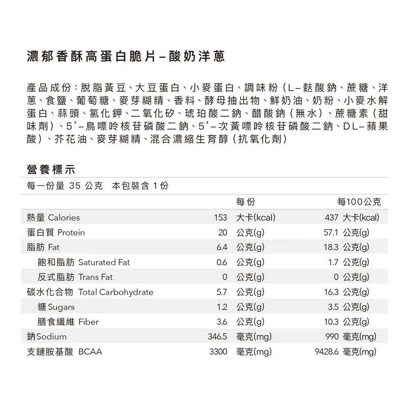 濃郁香酥高蛋白脆片 - 酸奶洋蔥
