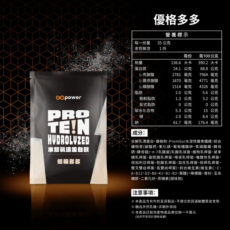 【其他揭露事項】:本產品含有牛奶及其製品,不適合對其過 敏體質者食用。本產品包裝內附贈25g湯匙1支