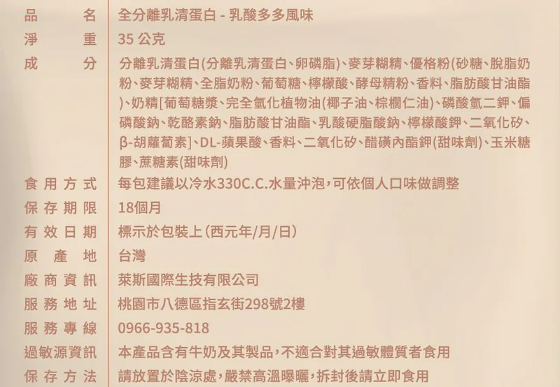 全分離乳清蛋白|乳酸多多風味