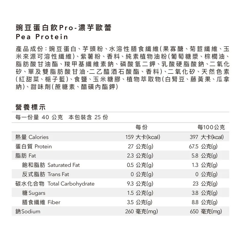 全素多效豌豆蛋白飲 PRO 1KG 大包裝| 濃芋歐蕾【小破洞】