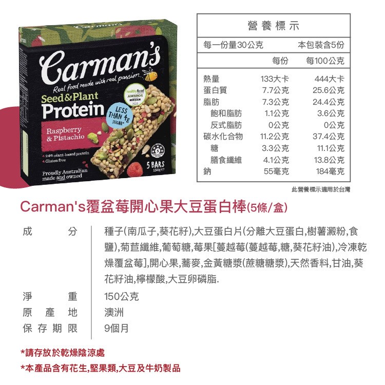 覆盆莓開心果植物蛋白棒【單入】